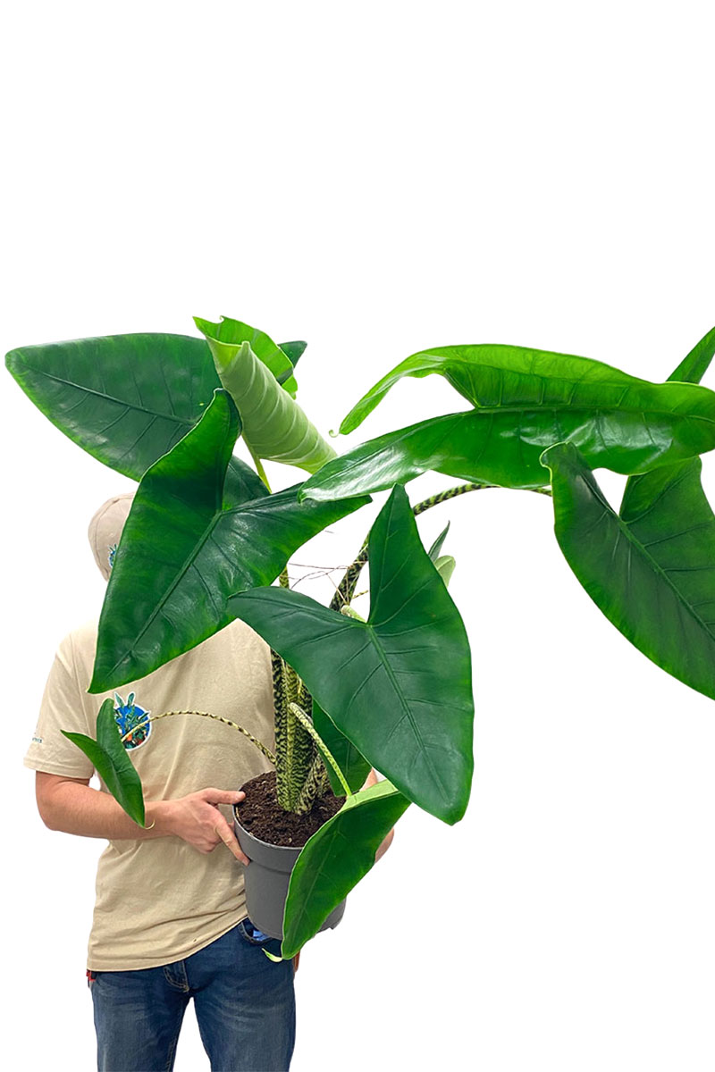 Die Alocasia Zebrina ist eine auffällige Zimmerpflanze mit dekorativen, pfeilförmigen Blättern und charakteristischen gestreiften Stielen, die jedem Raum ein exotisches Flair verleihen. Die Alocasia Zebrina ist giftig für Haustiere und Kinder und sollte daher ausser Reichweite aufgestellt werden. Mit ihrem markanten, aufrechten Wuchs und den dekorativen Blättern ist die Alocasia Zebrina ein echter Blickfang in Wohn- und Arbeitsräumen. Die Alocasia Zebrina ist pflegeleicht, wenn Licht, Wasser und Luftfeuchtigkeit optimal aufeinander abgestimmt werden, und eignet sich hervorragend als Solitärpflanze oder in Pflanzgruppen.