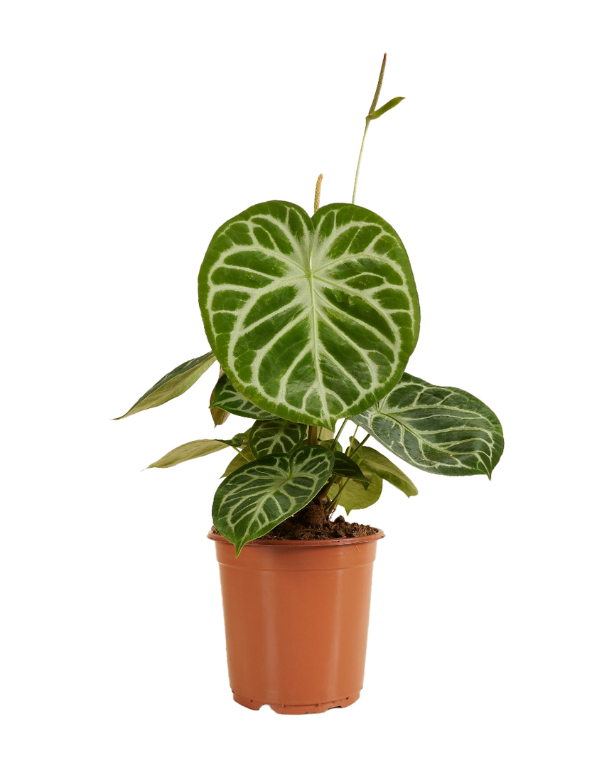 Die Anthurium Silver Blush ist eine elegante und dekorative Zimmerpflanze, die Pflanzenliebhaber durch ihre samtigen, dunkelgrünen Blätter mit silbrigen Blattadern begeistert. Die Anthurium Silver Blush zeichnet sich durch ihr tropisches Erscheinungsbild und die auffällige Blattstruktur aus, die sie zu einem echten Highlight in jeder Pflanzensammlung macht. Die Anthurium Silver Blush ist pflegeleicht und entwickelt sich bei richtiger Pflege zu einer prächtigen Zimmerpflanze. Die Anthurium Silver Blush ist giftig und sollte ausser Reichweite von Kindern und Haustieren platziert werden.
