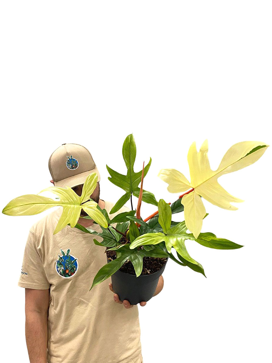 Der Philodendron Florida Ghost ist eine auffällige Zimmerpflanze mit grossen, herzförmigen Blättern, die beim Austrieb weisslich sind und später grün werden, wodurch die Pflanze einen besonderen Charme erhält. Der Philodendron Florida Ghost ist giftig für Haustiere und Kinder und sollte ausser Reichweite aufgestellt werden. Mit ihrem kletternden, rankenden Wuchs ist der Philodendron Florida Ghost ideal für Hängeampeln, Spaliere oder als Solitärpflanze. Der Philodendron Florida Ghost ist pflegeleicht, robust und entwickelt sich bei richtiger Pflege zu einer imposanten Zimmerpflanze. Die Blätter des Philodendron Florida Ghost verleihen jedem Raum ein tropisches Flair.