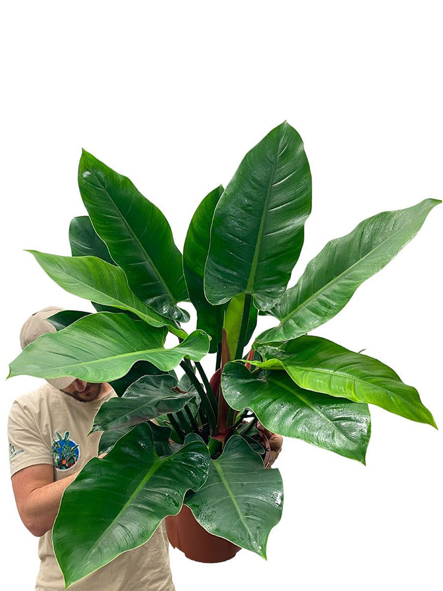 Der Philodendron Imperial Green ist eine dekorative Zimmerpflanze mit grossen, glänzenden, dunkelgrünen Blättern, die jedem Raum ein tropisches und luxuriöses Flair verleihen. Der Philodendron Imperial Green ist giftig für Haustiere und Kinder und sollte daher ausser Reichweite aufgestellt werden. Mit seinem aufrechten, buschigen Wuchs und den üppigen Blättern ist der Philodendron Imperial Green ein markanter Blickfang in jeder Wohnung. Der Philodendron Imperial Green ist pflegeleicht, robust und eignet sich sowohl für helle Wohnräume als auch für Büros. Der Philodendron Imperial Green kann sowohl einzeln als Solitärpflanze als auch in Pflanzgruppen kultiviert werden.