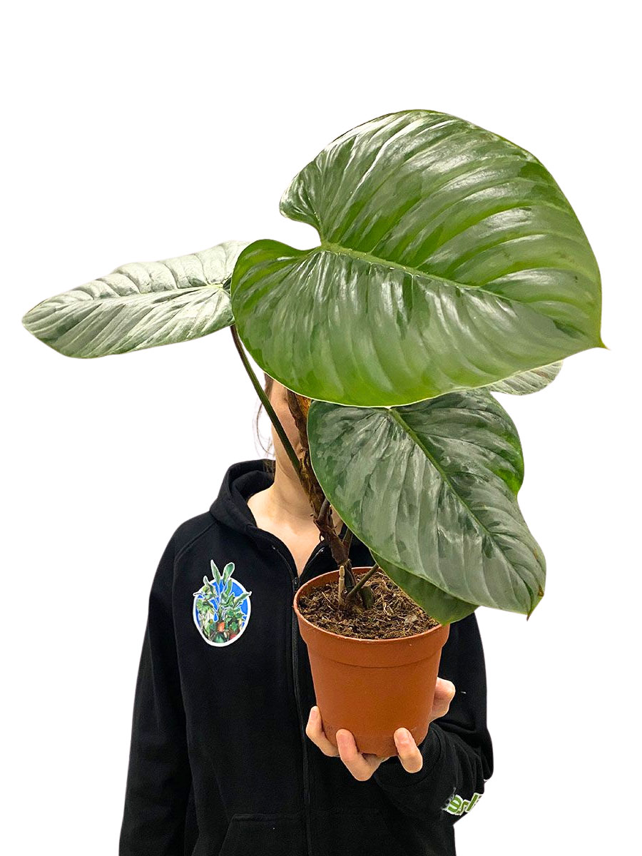 Der Philodendron sodiroi ist eine dekorative Zimmerpflanze mit auffälligen, herzförmigen Blättern, die einen satten Grünton besitzen und sich durch weisse Blattadern auszeichnen. Der Philodendron sodiroi ist giftig für Haustiere und Kinder und sollte daher ausser Reichweite platziert werden. Mit seinem kletternden, rankenden Wuchs ist der Philodendron sodiroi ideal für Hängeampeln, Rankhilfen oder als Solitärpflanze. Der Philodendron sodiroi ist pflegeleicht, robust und entwickelt sich bei richtiger Pflege zu einer prächtigen Zimmerpflanze. Die Blätter des Philodendron sodiroi verleihen jedem Wohnraum tropisches Flair und Eleganz.