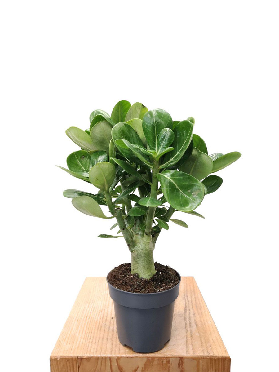 Die Wüstenrose Adenium Obesum ist eine exotische und dekorative Zimmerpflanze, die Pflanzenliebhaber mit ihrem dicken, sukkulenten Stamm und den auffälligen Blüten begeistert. Die Wüstenrose Adenium Obesum verleiht jedem Raum ein tropisches und farbenfrohes Flair. Die Wüstenrose Adenium Obesum ist giftig für Haustiere und Kinder.